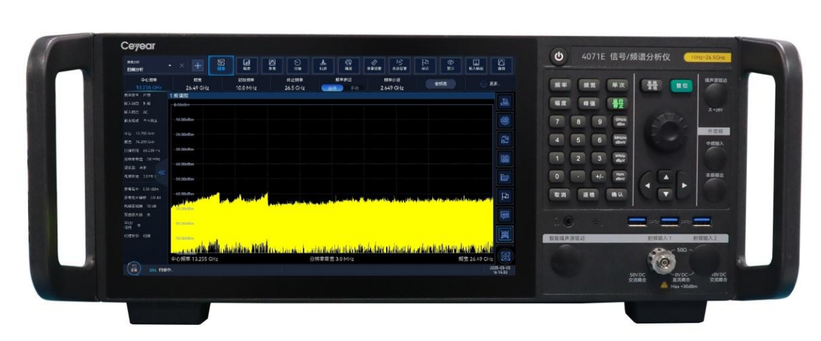 Ceyear 4071具备出色的测试动态范围、相位噪声、幅度精度和测试速度,具备频谱分析、I/Q分析、实时频谱分析、瞬态分析、矢量信号分析、脉冲分析等丰富的测试功能。