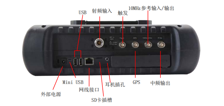 多样的辅助测试接口:10MHz参考输入输出接口、GPS天线接口、零扫宽中频输出接口、外触发输入接口等
