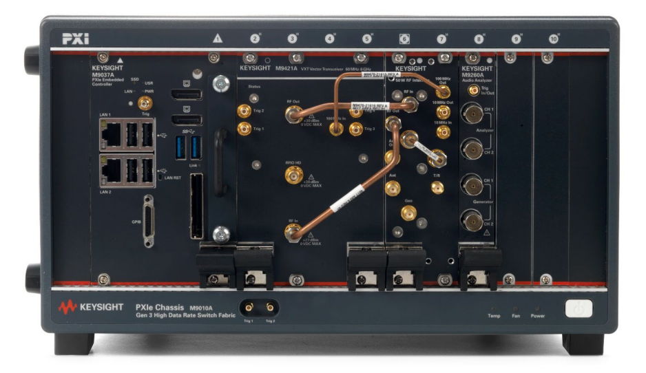 M8920A 是矢量收发器、射频接口和音频模块的硬件包,用户还需要无线电测试软件 (N9093EM0E) 以及 PXIe 机箱和控制器来完成此测试解决方案。