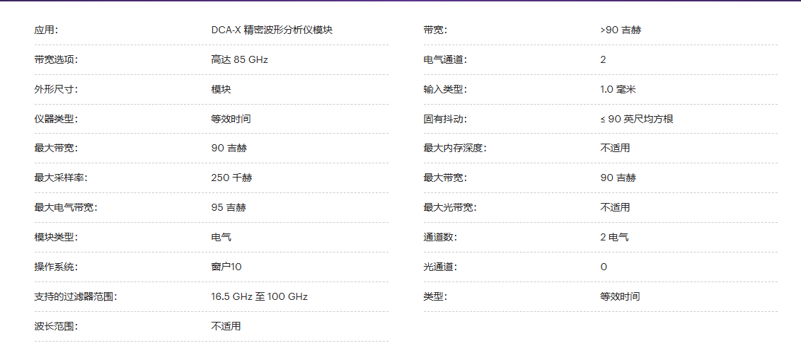 是德N1060A精密波形分析仪提供50/85 GHz带宽选项,支持高速光通信测试需求。具备高精度时域和频域分析能力,适用于400G/800G及更高速率光模块的研发验证与生产测试,助力实现精准的信号完整性分析。