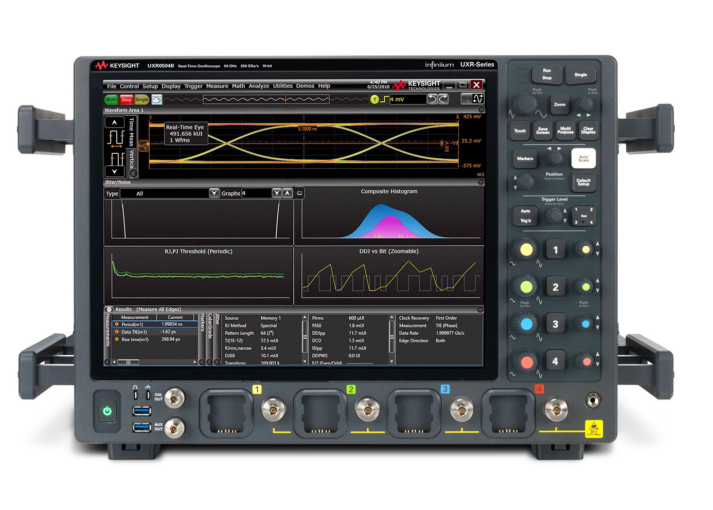 是德科技Infiniium UXR0504B是一款50 GHz带宽、4通道高端实时示波器。它具备卓越的噪声性能和高达256GSa/s的采样率,为下一代设计和验证提供精确的信号保真度,是进行前沿高速数字和光电测试的理想解决方案。