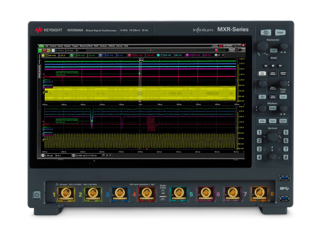 是德科技MXR608A Infiniium示波器,8通道同时提供6GHz带宽。它集示波器、频谱分析仪和逻辑分析仪于一体,凭借16位高分辨率,可对复杂嵌入式系统进行实时深度分析,是高速数字设计的理想测试平台。