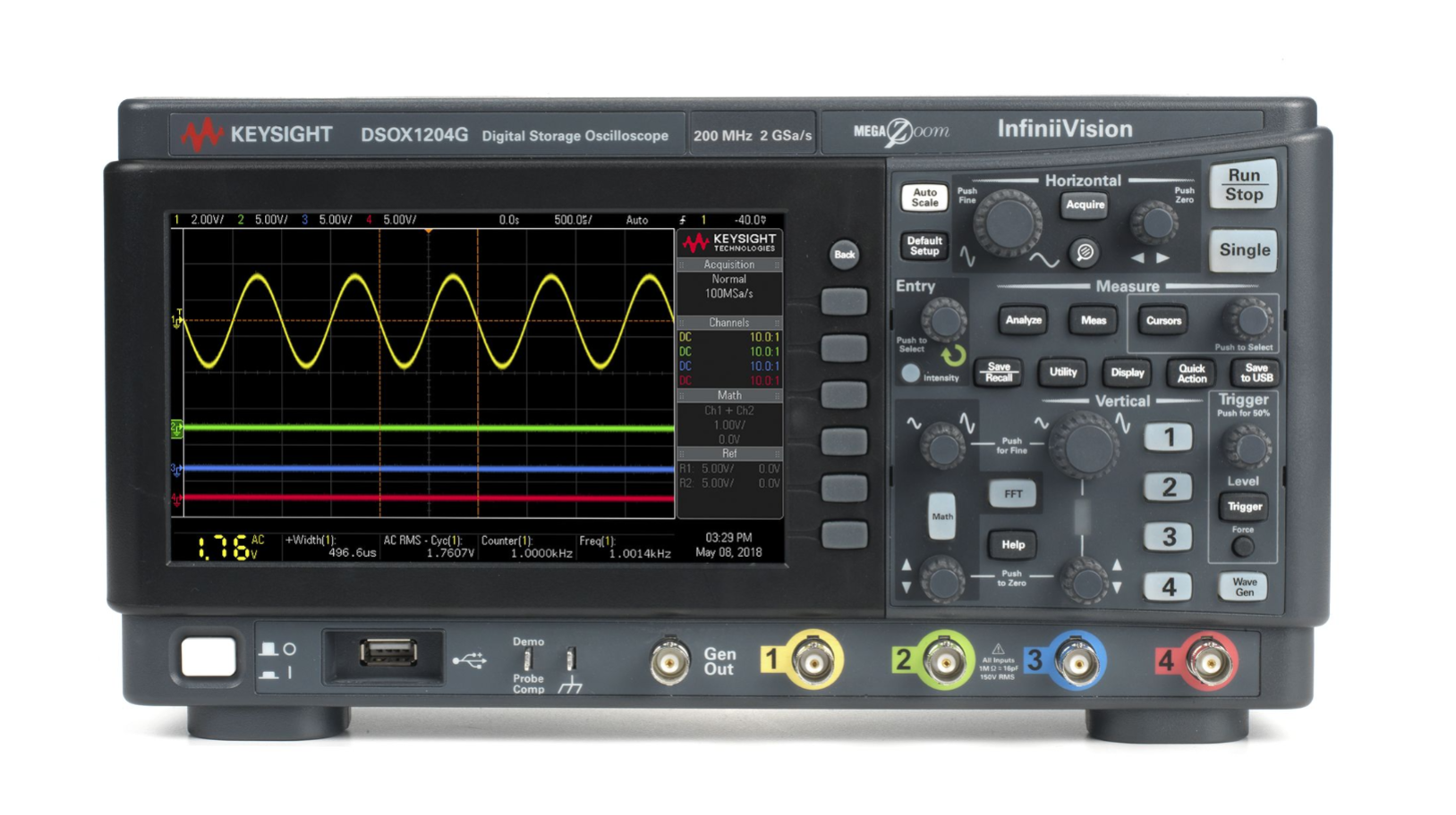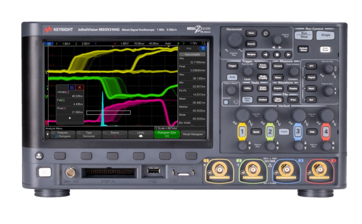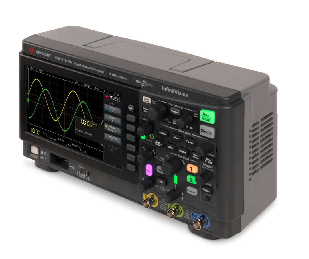 是德科技DSOX1202A示波器提供200MHz带宽和2通道,采样率达2GSa/s。配备8.5英寸电容触摸屏,集成丰富的测量功能,支持串行协议触发和解码,具备优异的信号保真度,是教育实验和基础电子测试的理想选择。