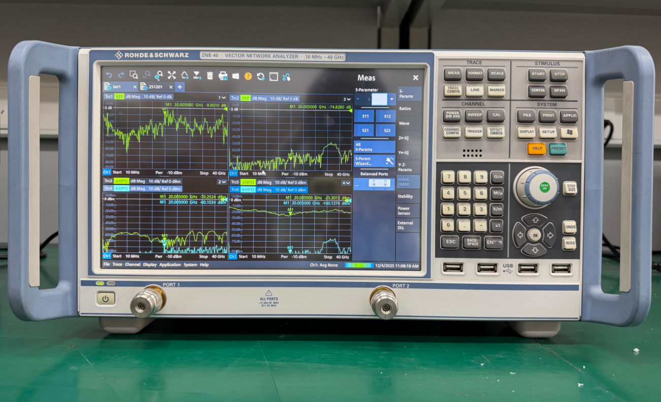 高速数字互连与硅基集成:在数据中心、高性能计算领域,112G/224G PAM4高速SerDes通道的信号完整性面临巨大挑战。ZNA67能够精确分析背板、电缆组装件及硅中介层的插入损耗、回波损耗和串扰,确保信号传输的可靠性。