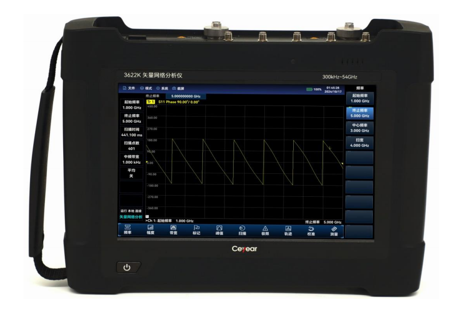 Ceyear 3622矢量网络分析仪系列化产品频率范围覆盖300kHz~54GHz,具有双端口矢量网络分析、天馈线分析、矢量电压计、光时域反射计、USB连续波功率测量和峰值功率测量等多项功能,具有体积小、重量轻、环境适应性强、供电灵活、操控方便等特点,产品可应用于移动通信、卫星通信、微波通信等设备的现场安装调试与维护保障测试。