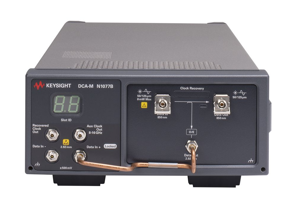 N1076B 对高达 64 GBd 的电信号提供仪器级时钟恢复。可调节的环路带宽和峰值可确保符合标准的时钟恢复能力。N1076B 通过 USB 连接连接到 N1000A 或 86100D DCA-X 主机或运行 N1010A FlexDCA 软件的独立 PC。