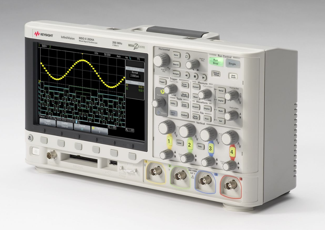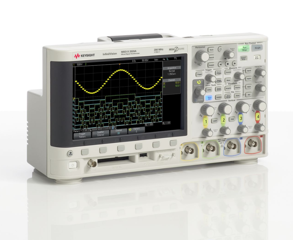 是德科技DSOX2014A数字示波器提供100MHz带宽和4个模拟通道,配备2Mpts存储深度及50,000波形/秒刷新率。7英寸触控屏支持区域触发和22种自动测量,紧凑设计适合多通道教学实验和基础电子测试。