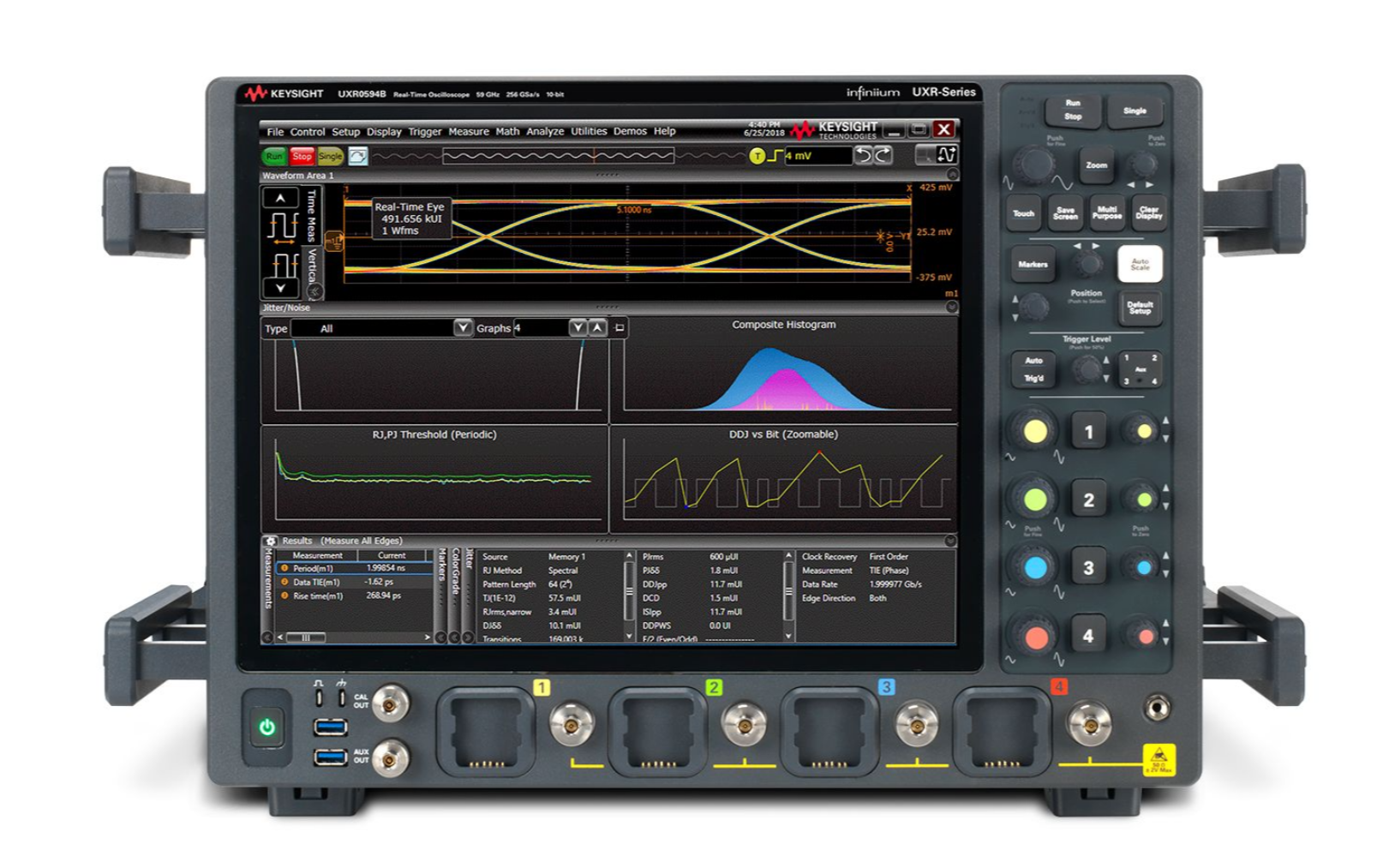 是德 UXR0704B 属 Infiniium UXR 系列实时示波器,4 通道均达 70 GHz 带宽且可升级至 110 GHz,标配 256GSa/s采样率与 500Mpts存储。具备 10位ADC 与超低噪声抖动,含SDA、信号补偿等功能,为高速信号分析提供高精度方案。