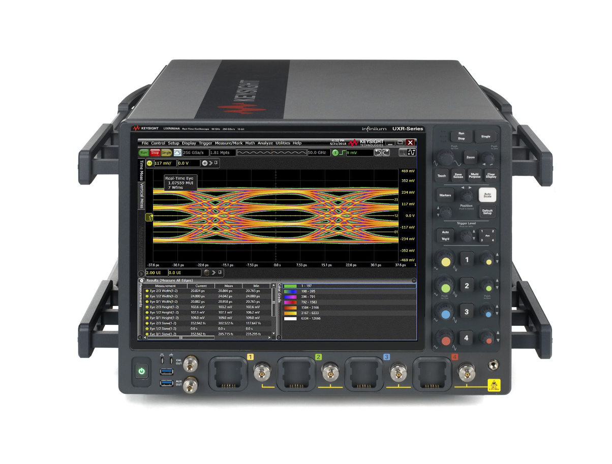 UXR0504A Infiniium UXR系列实时示波器提供50GHz带宽和4个全带宽通道,每个通道采样率高达256 GSa/s,并采用10位ADC实现高精度信号采集。其存储深度最高可达2 Gpts,支持升级至110 GHz,适用于高速数字设计、光电测试和前沿通信研发。