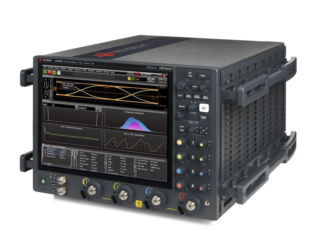 是德科技Infiniium UXR系列UXR0254A示波器,提供25 GHz带宽和4通道128 GSa/s同步采样。搭载10位ADC和2 Gpt存储深度,支持升级至110 GHz,配备专业探头接口和自校准功能,满足最严苛的高速数字信号测试需求。