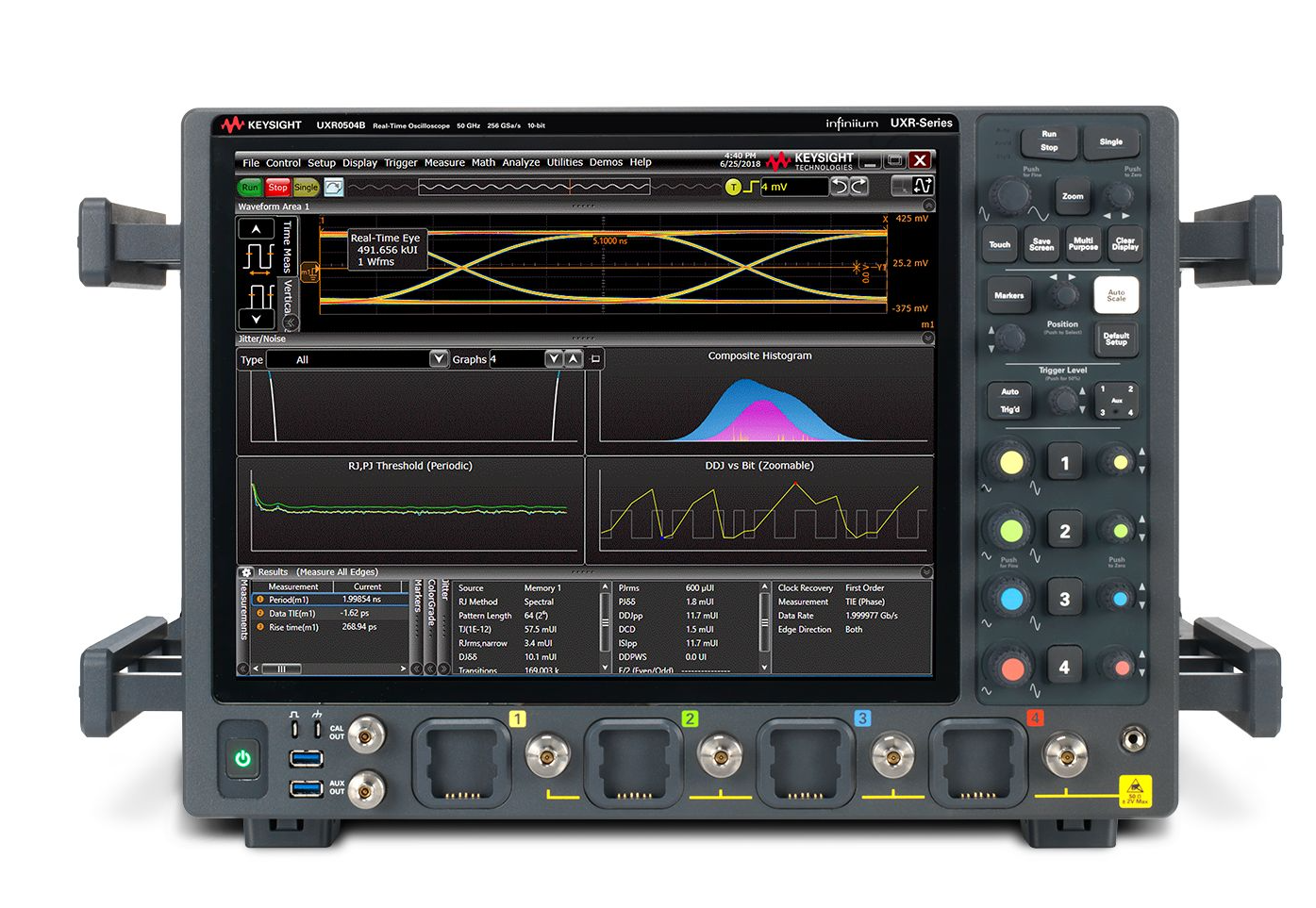 是德科技Infiniium UXR0504B是一款50 GHz带宽、4通道高端实时示波器。它具备卓越的噪声性能和高达256GSa/s的采样率,为下一代设计和验证提供精确的信号保真度,是进行前沿高速数字和光电测试的理想解决方案。
