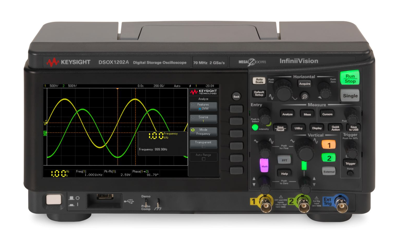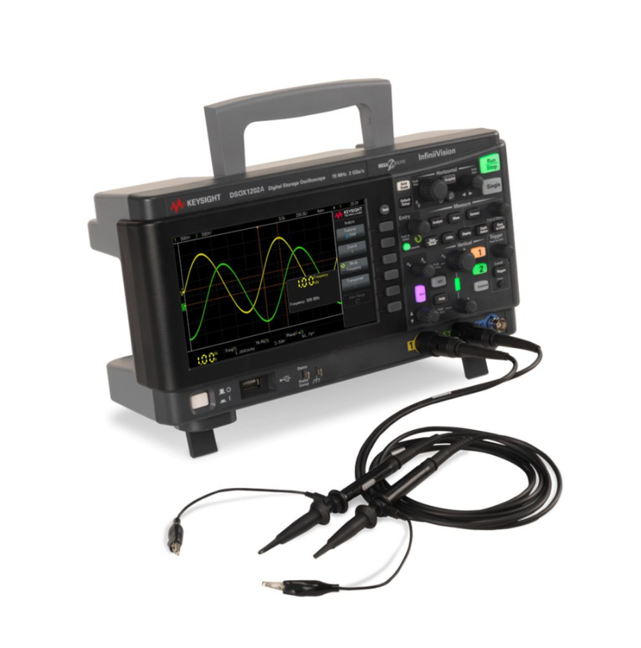 是德科技DSOX1202A示波器提供200MHz带宽和2通道,采样率达2GSa/s。配备8.5英寸电容触摸屏,集成丰富的测量功能,支持串行协议触发和解码,具备优异的信号保真度,是教育实验和基础电子测试的理想选择。