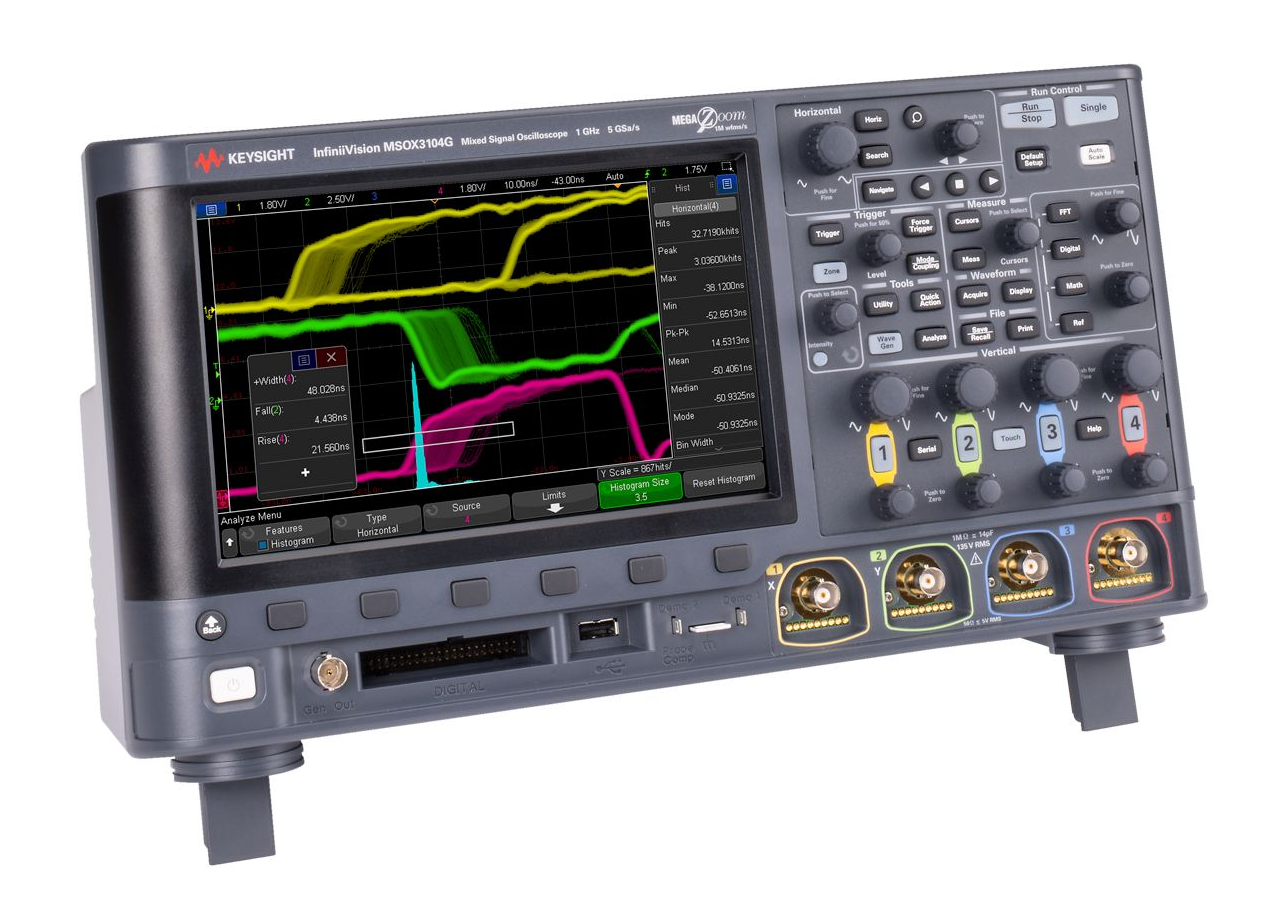 是德科技DSOX3024G是一款200 MHz四通道数字示波器。它提供4 GSa/s采样率和5万次波形/秒的更新速率,能精准捕获电路信号细节。其广泛用于嵌入式系统的设计调试、电源完整性测试及串行总线(如I2C, SPI)协议分析,是工程师验证和排查复杂电路问题的理想工具。