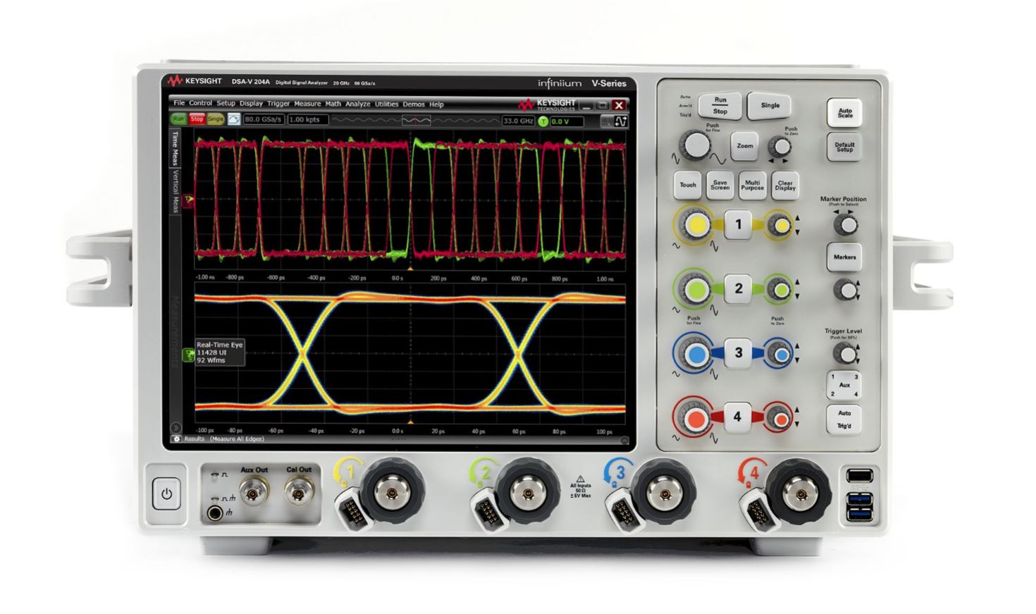 通过高达 80 GSa/s 的采样率和 2 Gpts 的采集存储器捕获更长的信号迹线
