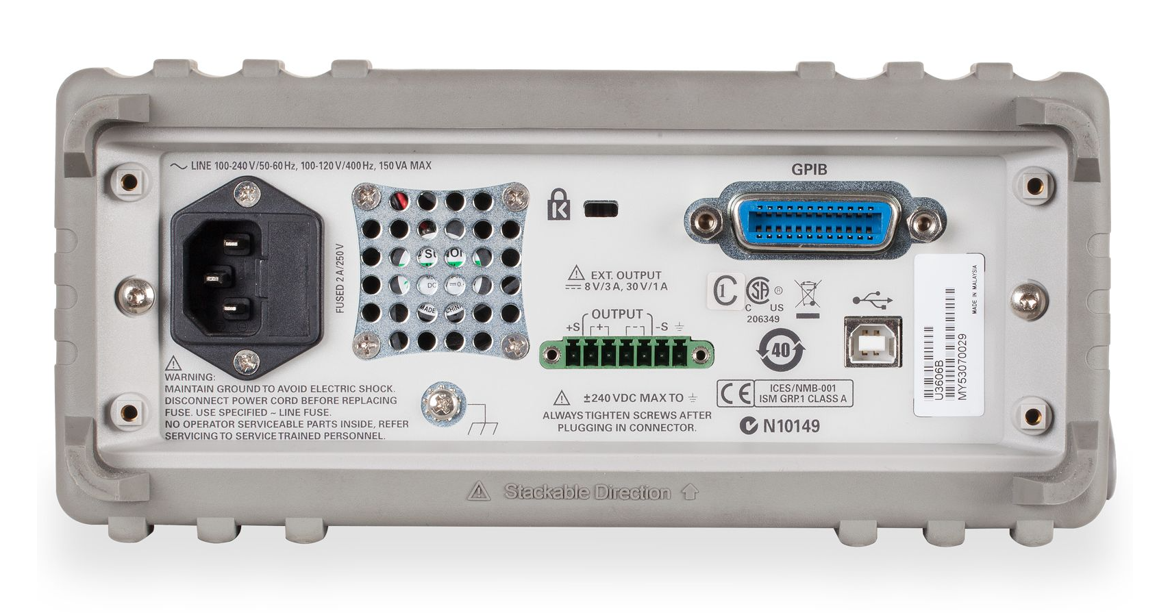测试仪器的安全功能始终是一个额外的优势。它不仅可以保护用户免受电流的影响,还可以保护用户因投资 (DUT) 而产生的额外成本。我们的 U3606B 集成了一系列安全功能,例如过压 (OVP) 和过流 (OCP) 保护,以减轻这些风险。此外,安全功能(例如战略性地位于设备后部的 Kensington 锁槽)可保护您的仪器在无人看管时免受被盗或错放的风险。