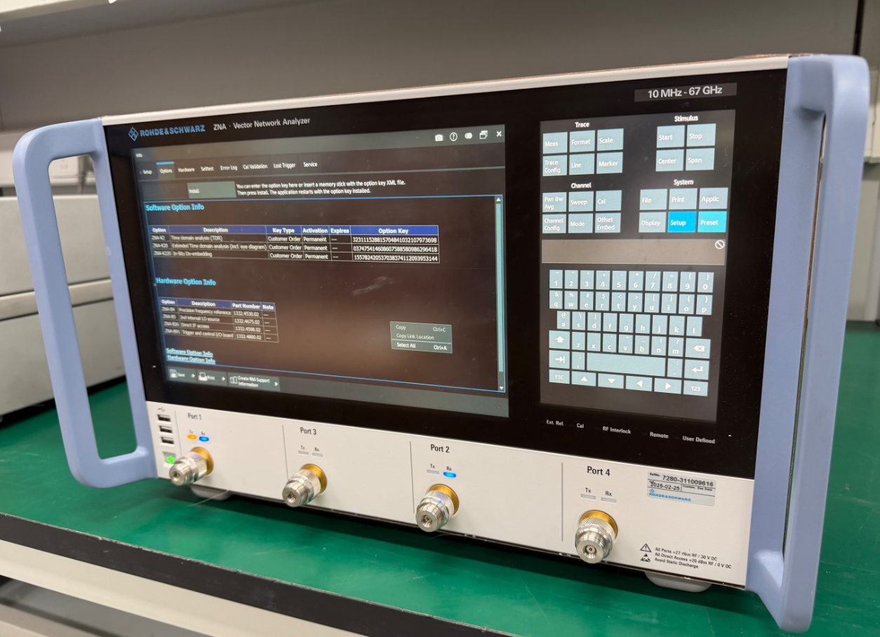 高速数字互连与硅基集成:在数据中心、高性能计算领域,112G/224G PAM4高速SerDes通道的信号完整性面临巨大挑战。ZNA67能够精确分析背板、电缆组装件及硅中介层的插入损耗、回波损耗和串扰,确保信号传输的可靠性。